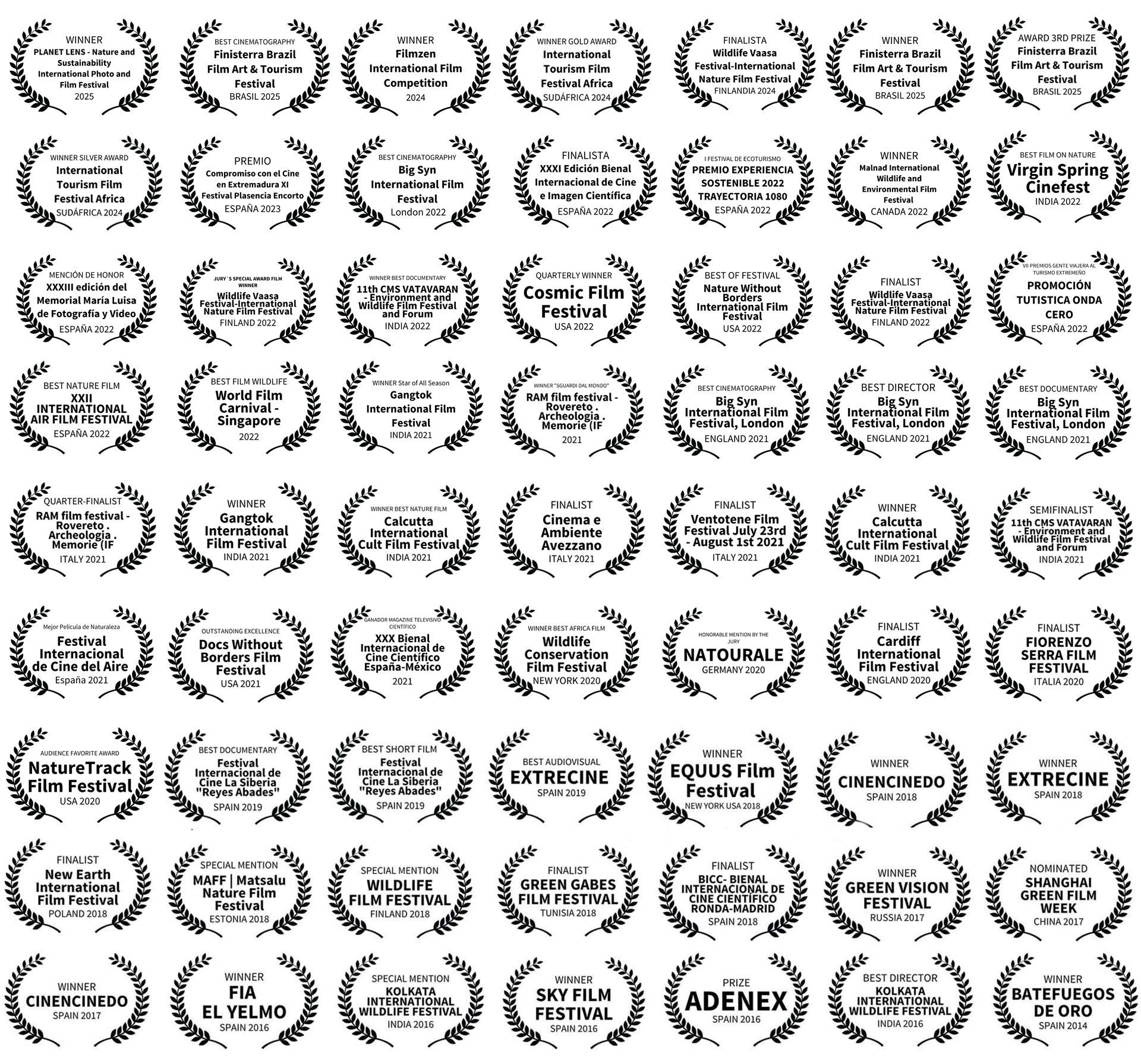 - - Award 3rd Prize Ex aequo Best Nature & Wildlife Tourism Film Finisterra Brasil Film Art & Tourism Festival BRASIL 2025 "Garajonay. The Ancient Forest of Europe".